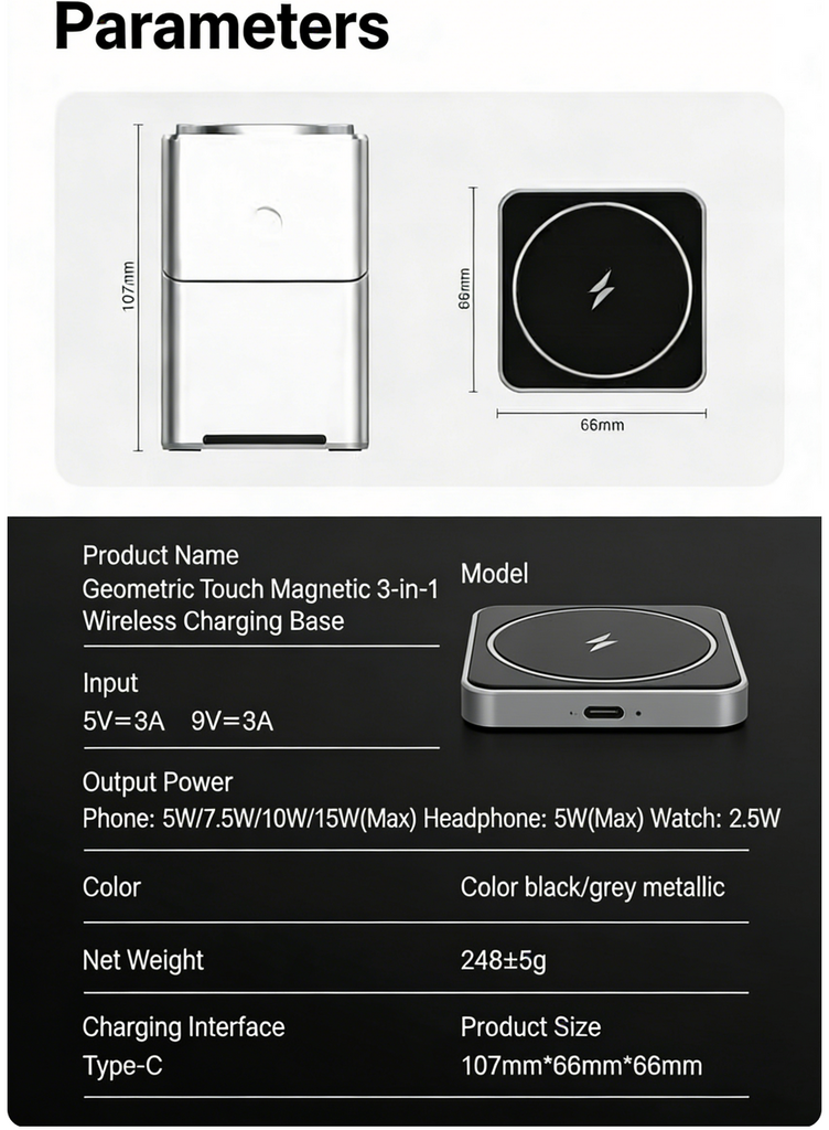 This foldable 3-in-1 magnetic wireless charging stand is designed for fast and convenient charging of your iPhone, Apple Watch, and AirPods. Featuring a strong MagSafe-compatible magnetic mount, it keeps devices securely aligned for efficient fast...